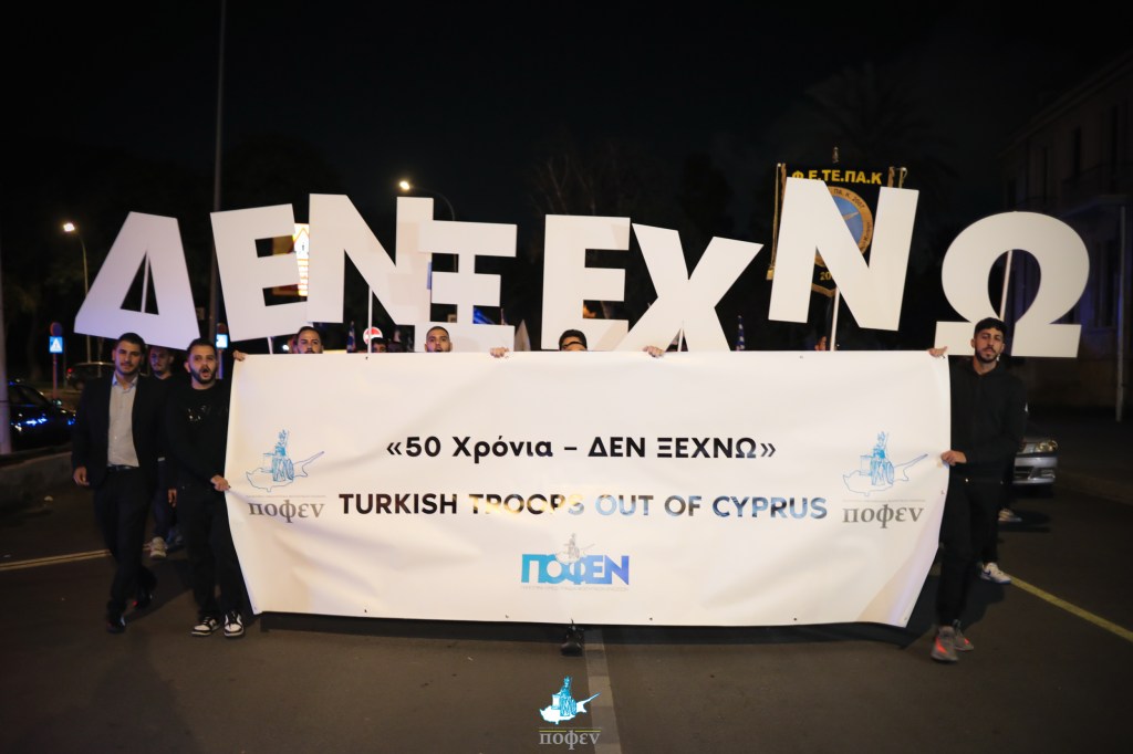 Η ΠΟΦΕΝ καλεσε κάθε Κύπριο και κάθε Κύπρια, κάθε νέο και νέα που αγωνιούν για την πατρίδα τους, να σταθούν μαζί της σε μια εκδήλωση μνήμης, καταδίκης και διεκδίκησης. Τιμήσαμε όσους πάλεψαν, όσους θυσιάστηκαν και όσους ακόμα περιμένουν τη δικαίωση του τόπου μας. Τιμούμε τα χωριά και τις πόλεις που χάθηκαν, τους ανθρώπους που δεν επέστρεψαν, τα όνειρα που σβήστηκαν από την βία και την καταπάτηση.